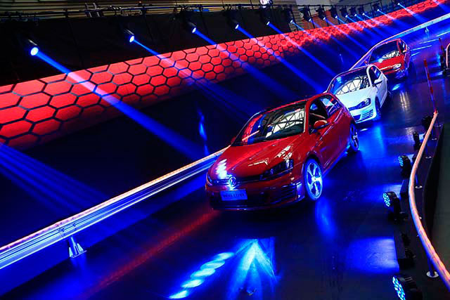 发布会现场,全新高尔夫GTI环绕赛道震撼登场